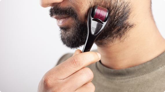 Roll on Beard: Gently roll the derma roller over your beard area in multiple directions (horizontal, vertical, and diagonal). Apply light pressure.